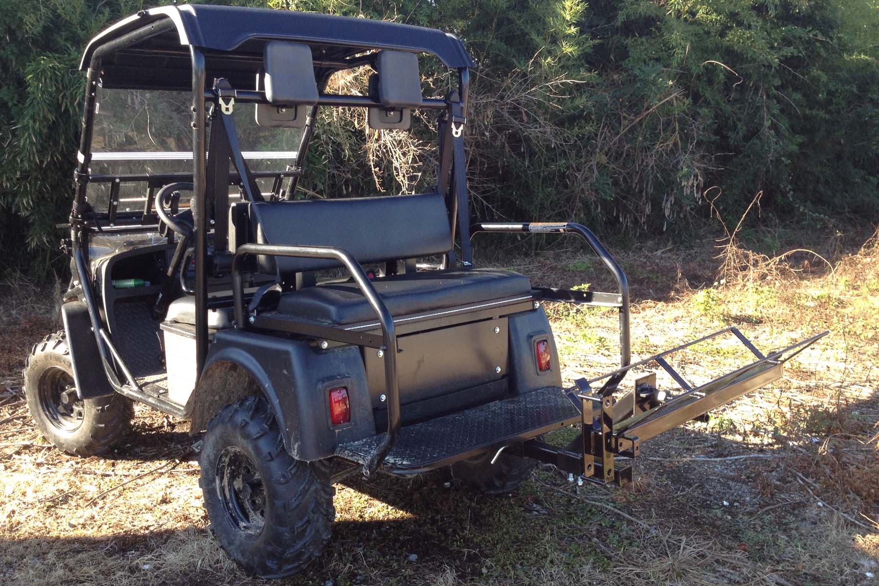 Mounts to receiver hitch of UTV
