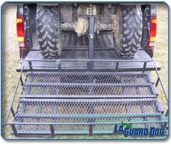 The Rack-N-Ramp doubles as an ATV ramp solution and a cargo carrier (24" x 48"). This product's unique 2-in-1 design provides ramps to load and unload your ATV and once you're finished you can fold them up to create a cargo basket for hauling products. The patented Slack-N-Ator design is included to eliminate all rattle and slack from your hitch receiver and provides a sturdy and rigid fit for the cargo carrier.